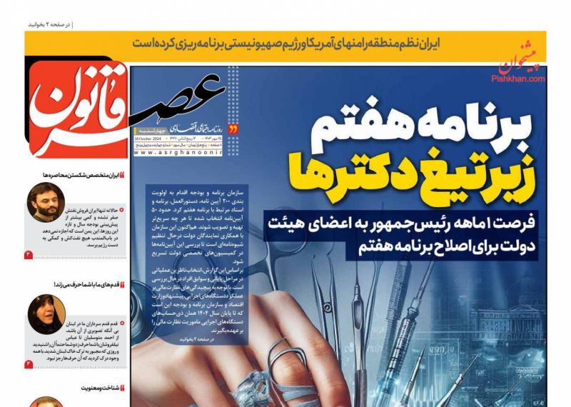 صفحه نخست روزنامه‌های امروز چهارشنبه 25 مهر 1403