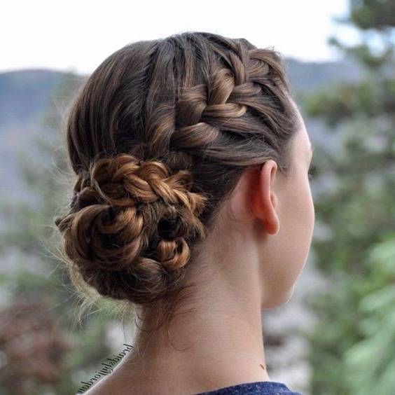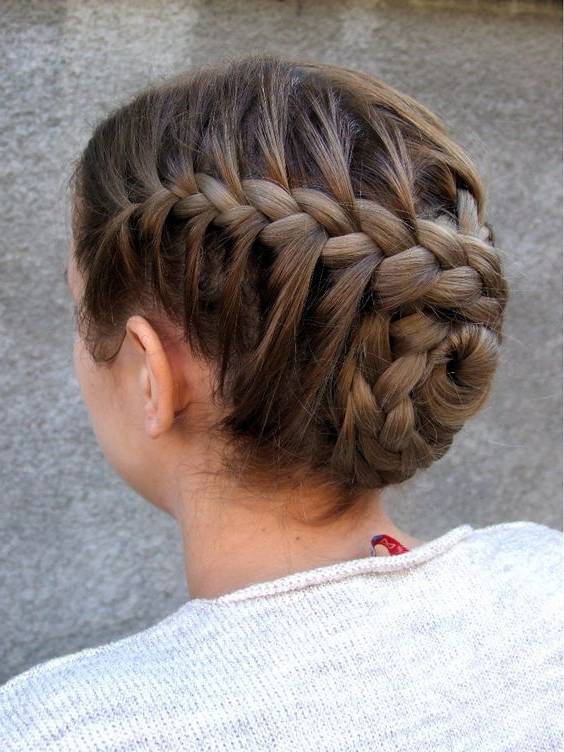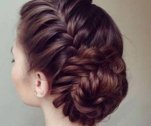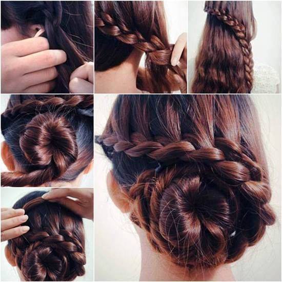 - حالا انتهای موی بافته شده را ببندید و کاری به آن نداشته باشید، بروید سراغ موها بافته نشده و آن ها را مانند عکس بپیچانید تا گوجه ای شکل شود.