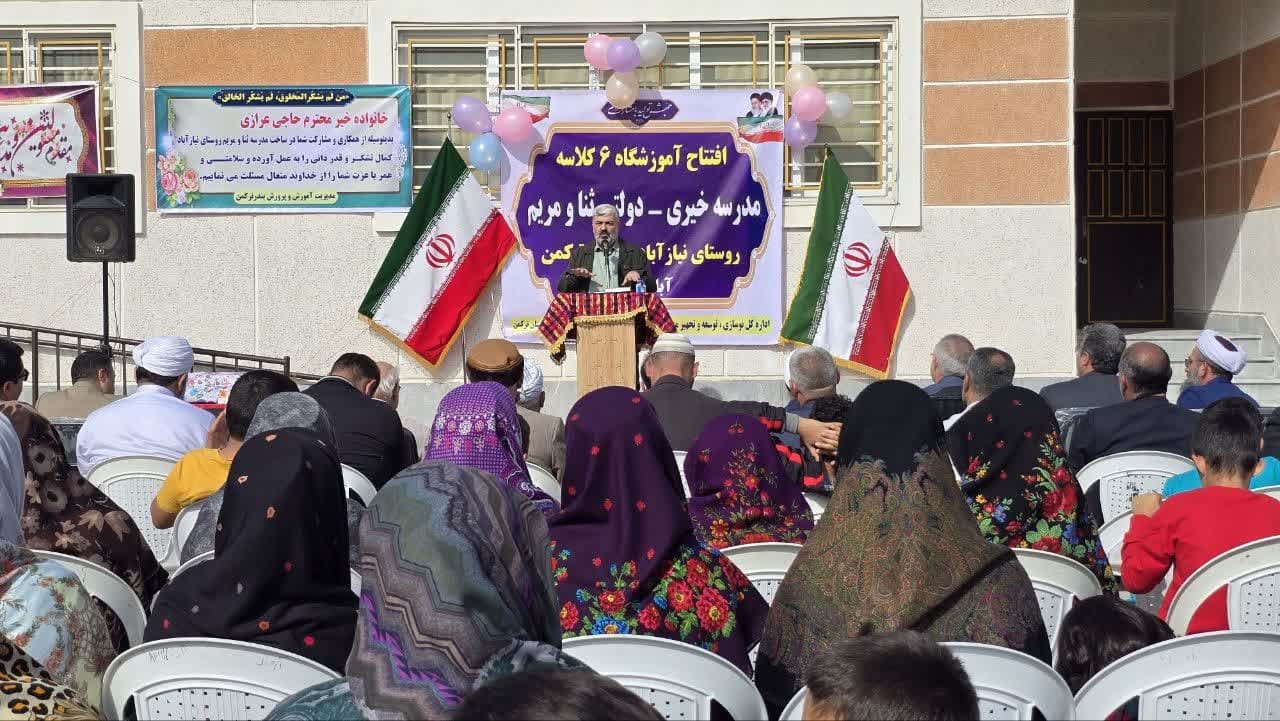 همچنین با حضور شهریار خواجه‌صالحانی مدیرکل حوزه ریاست سازمان نوسازی، توسعه و تجهیز کشور که در مراسم افتتاح سالن ورزشی حضور داشت، مدرسه ۶ کلاسه ثنا و مریم در روستای نیازآباد از توابع شهرستان بندرترکمن مورد بهره‌برداری قرار گرفت.