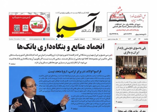 کد: 385208 | 27 آبان 1403 ساعت 07:29 صفحه نخست روزنامههای امروز یکشنبه 27 آبان 1403 صفحه نخست روزنامههای امروز یکشنبه 27 آبان 1403 روزنامه های سراسری مطبوعات کشور روزنامه اشتراک گذاری گزارش خطا × اشتراک گذاری مطلب: صفحه نخست روزنامههای امروز یکشنبه 27 آبان 1403 فیسبوک اینستاگرام تلگرام ایکس (توییتر) ایتا بله روبیکا × گزارش خطا برای گزارش خطا با پست الکترونیکی: ruydadiran[at]gmail.com در ارتباط باشید