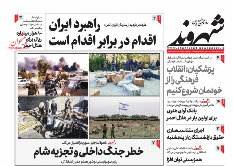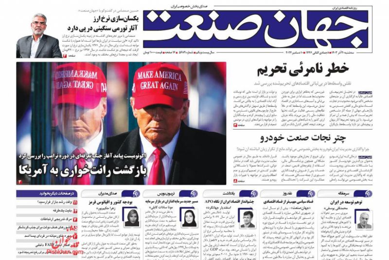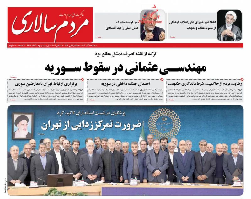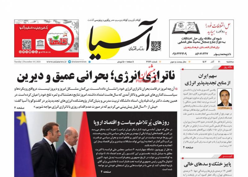 صفحه نخست روزنامه‌های امروز سه شنبه 20 آذر 1403
