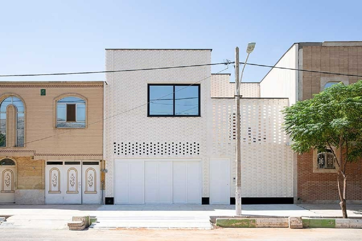 نمای پروژه با مصالحی آشنا ،ارزان، بوم آورد ، که تقویت حس تعلق را هم انجام می دهد اجرا شده است ،به دلیل محدودیت هزینه نتوانستیم آجرهای سفارشی با ابعاد دلخواه پیدا کنیم بنابراین آجرهای موجود در بازار با ابعاد معمولی را با استفاده از نیروهای ساده کار برش دادیم تا در آنها تغییر فرم ایجاد کنیم و از داشتن یک نمای تخت دو بعدی و یکنواخت دوری کنیم، دوقاب مشبک در نما اجرا شده یکی برای تهویه و نوردهی به پارکینگ و دیگری برای یادآوری ارزش های تاریخی ، اجتماعی و فردی به طوریکه هر فردی در تراس بالا می ایستد می تواند چشم انداز زیبایی از کوه های شمالی با حفظ محرمیت و فرم متفاوت را تجربه و تماشا کند.