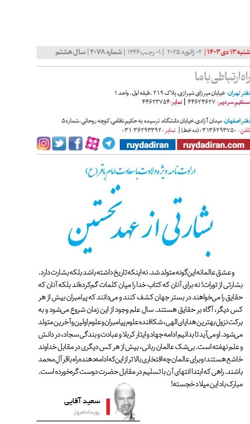 او می آید تا بدانیم ادامه جهاد و ایثار کربلا و عبادت و بندگی سجاد، در دانش و علم نهفته است.