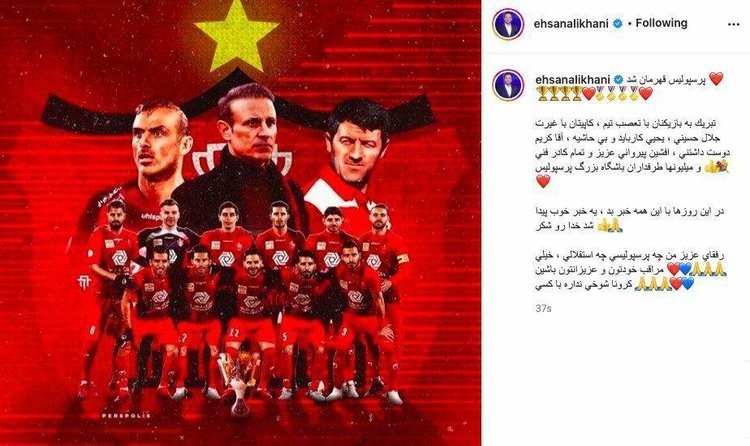 احسان علیحانی مجری معروف پرسپولیسی پس از چهارمین قهرمانی پرسپولیس پستی را در اینستاگرام منتشر کرد.