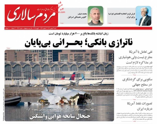 صفحه نخست روزنامه‌های امروز شنبه 13 بهمن 1403