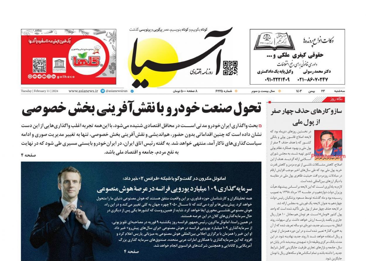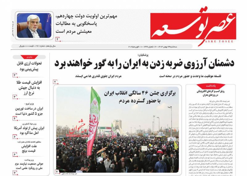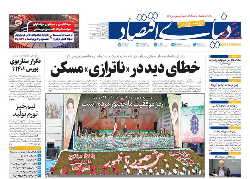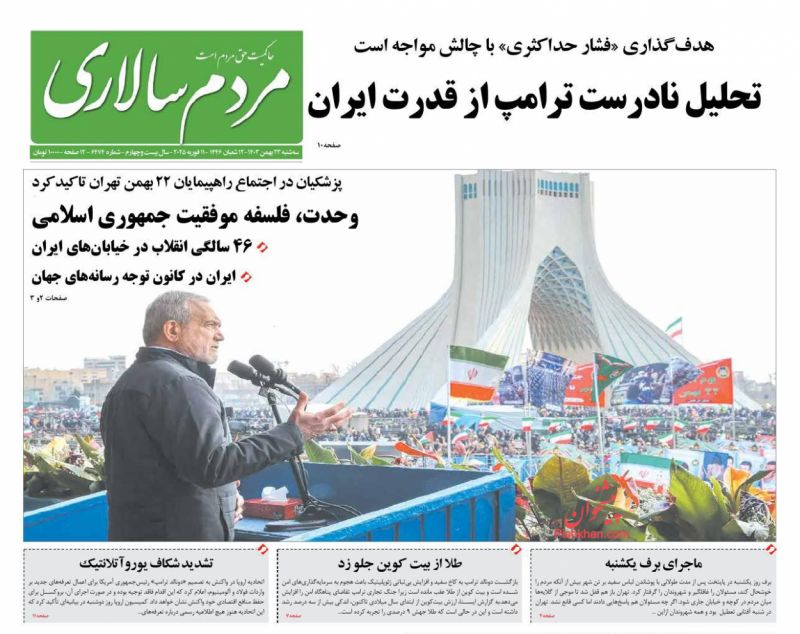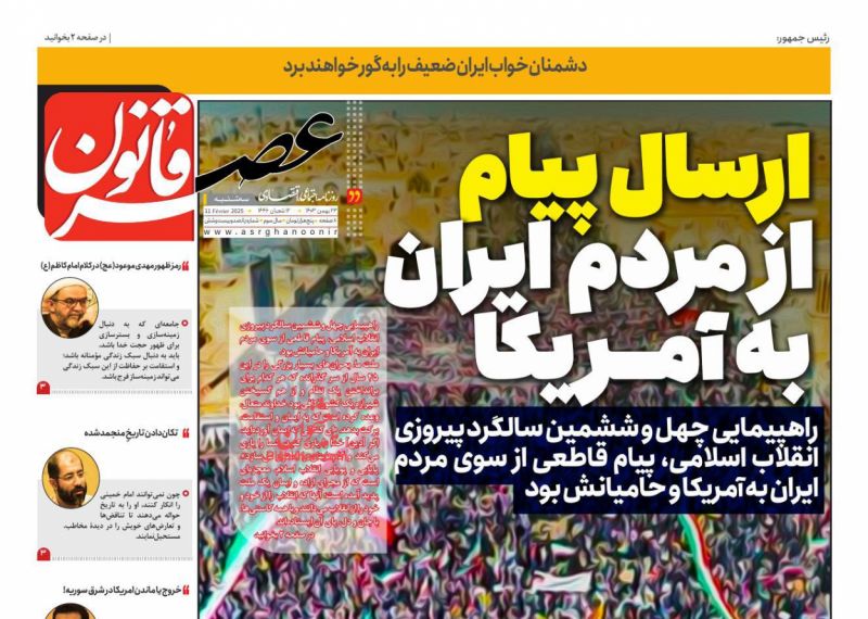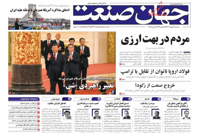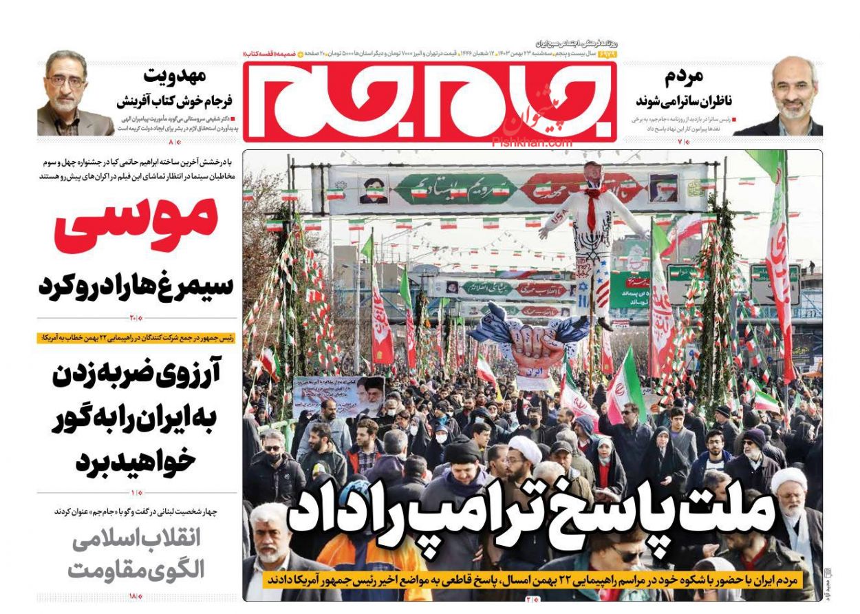 صفحه نخست روزنامه‌های امروز سه شنبه 23 بهمن 1403