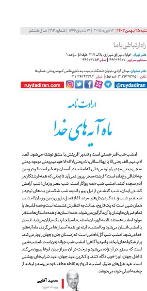 شب آرامش کشتی ایمان، شب گذشتن از نیل بیم و اندوه، شب شکستن بت های تردید و ضعف و شب زنده کردن دل های مرده. آغاز فصل باروری زمین و زمان!