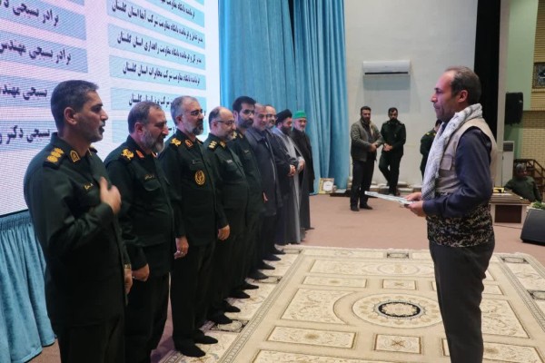 سرتیپ دوم پاسدار حسن صنعتگران مسئول سازمان بسیج ادارات و کارمندان کشور با اهدای لوح از همکار بسیجی مهندس محمد ایزانلو به عنوان *فرمانده پایگاه برتر «فعالین و برگزاری میز های خدمت جهادی »در بین دستگاه های اجرایی استان گلستان* تقدیر نمود.