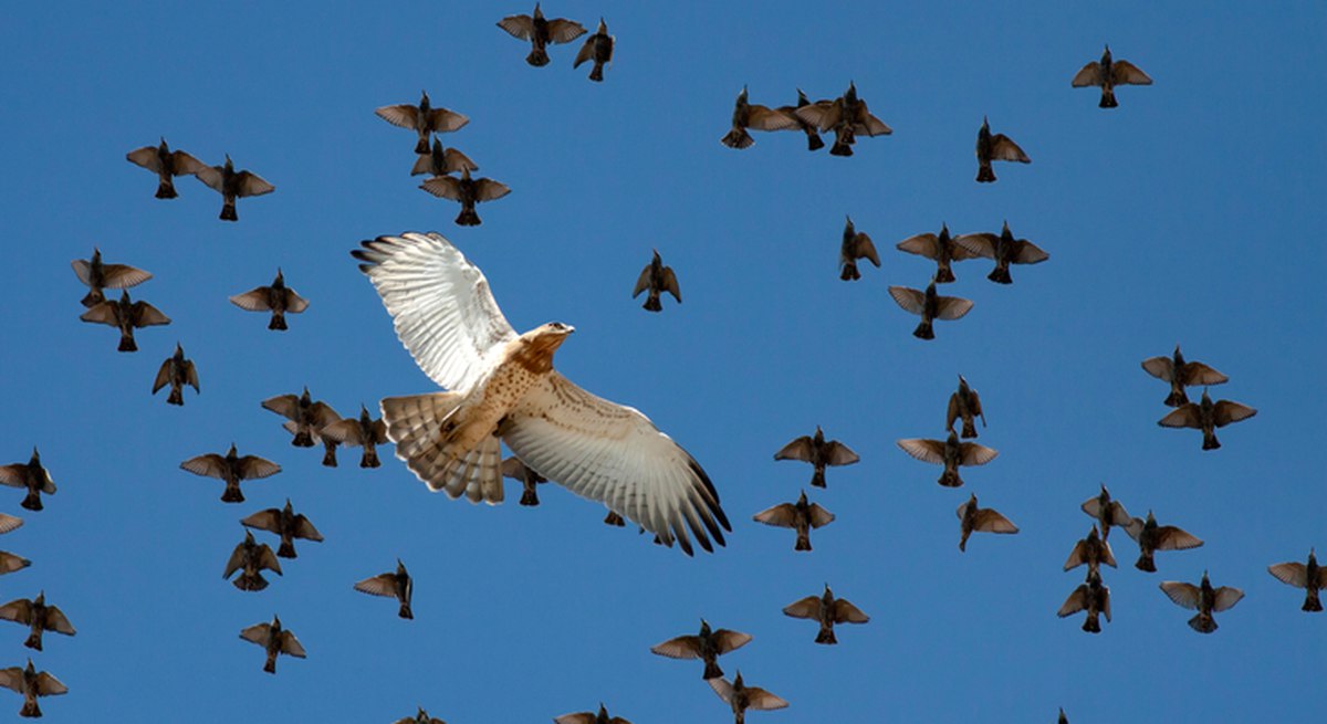 ثبت لحظات حمله پرندهای شکاری (احتمالا شاهین بحری)، به دسته بزرگی از سارها در بریتانیا بسیاری از علاقمندان به حیات وحش و طبیعت را به وجد آورده است.