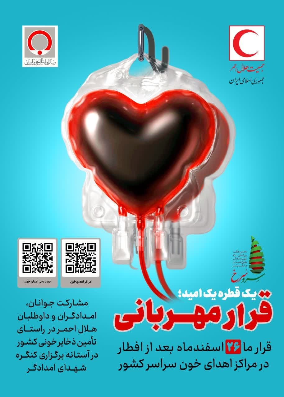 طرح «یک قطره، یک امید؛ قرار مهربانی» همزمان با سراسر کشور در گلستان برگزار میشود/قرار ما ۲۶ اسفندماه بعد از افطار در مراکز اهدای خون سراسر استان گلستان