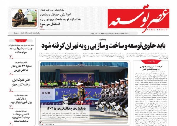 کد: 420128 | 26 اسفند 1403 ساعت 07:15 صفحه نخست روزنامههای امروز یکشنبه 26 اسفند 1403 صفحه نخست روزنامههای امروز یکشنبه 26 اسفند 1403 روزنامه های سراسری مطبوعات کشور روزنامه اشتراک گذاری گزارش خطا × اشتراک گذاری مطلب: صفحه نخست روزنامههای امروز یکشنبه 26 اسفند 1403 فیسبوک اینستاگرام تلگرام ایکس (توییتر) ایتا بله روبیکا × گزارش خطا برای گزارش خطا با پست الکترونیکی: ruydadiran[at]gmail.com در ارتباط باشید