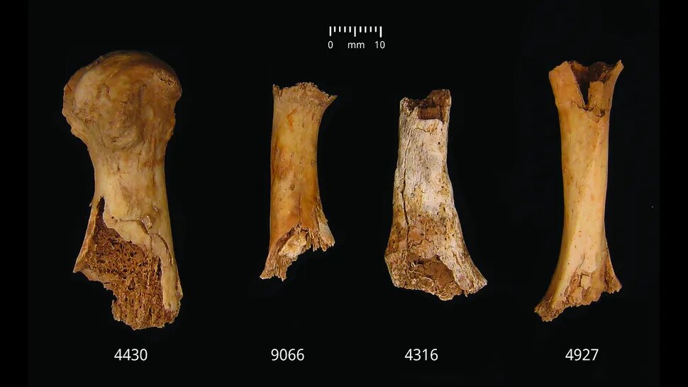 نشانههایی از آدمخواری: یکی از هولناکترین یافتهها، وجود استخوانهای خردشده دستوپا ست که دارای آثار جویده شدن توسط انسان هستند. محققان معتقدند این نشانهها احتمال آدمخواری در میان عاملان این قتلعام را مطرح میکند.