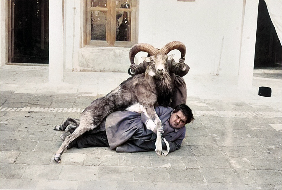 نوشته زیر عکس: «شکاری است که در کوههای دوشان‌تپه صید شصت مبارک گردید»