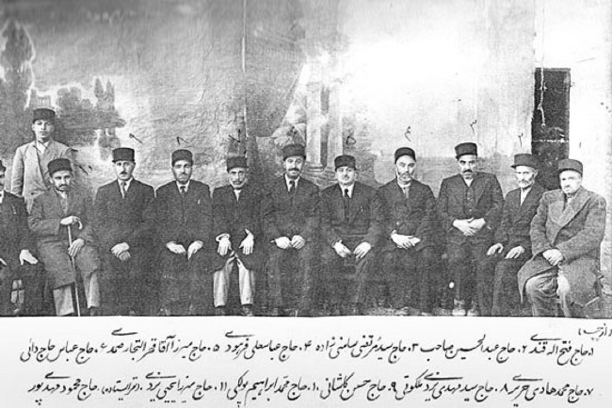 این تصویر متعلق به سال ۱۳۰۰ و مربوط به هیئت رئیسه‌ی بازرگانان کرمانشاه است.