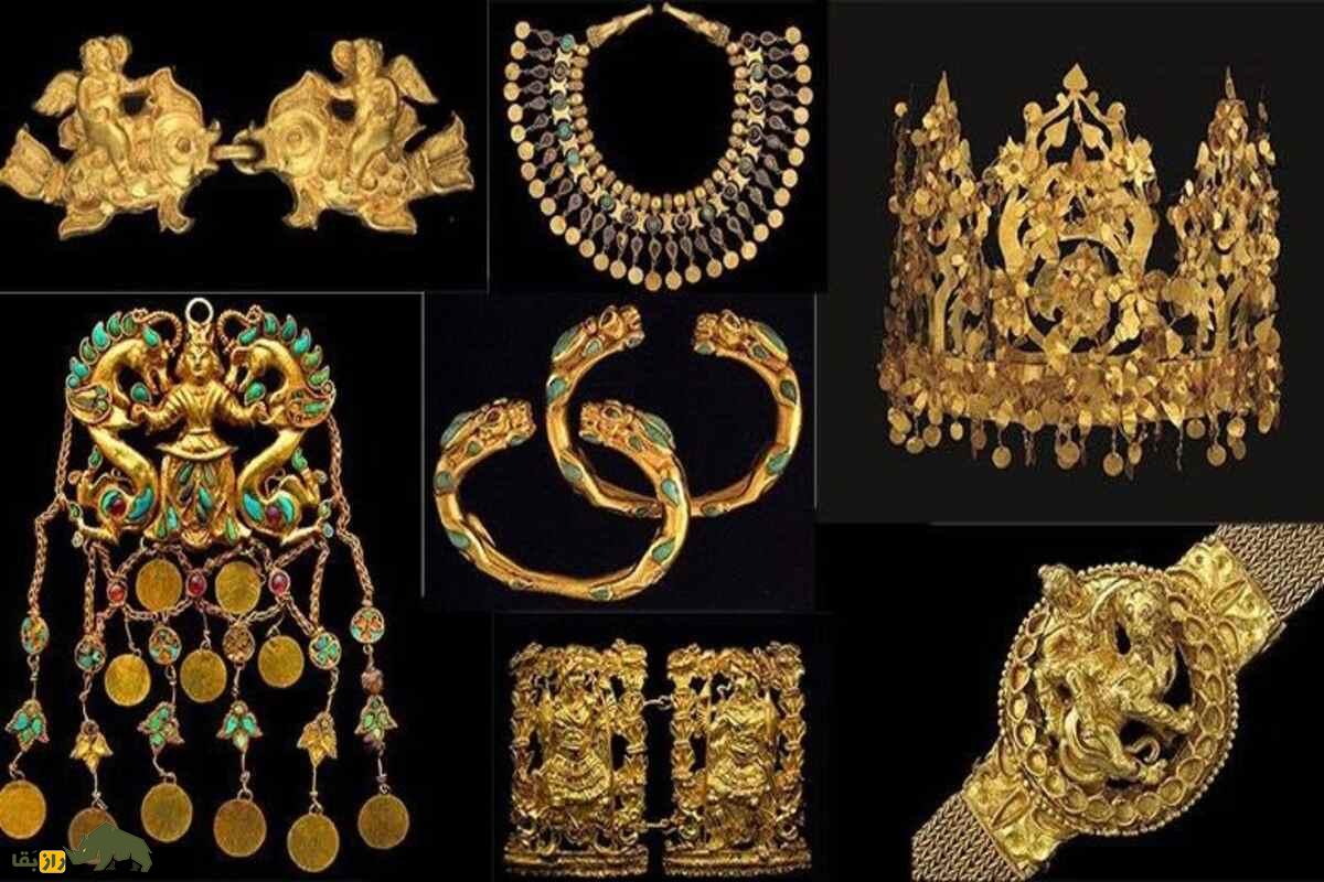 کمربندِ طلایی: کمربندی با نقشهای اساطیری که مهارتِ بالایِ هنریِ صنعتگرانِ آن زمان را نمایش میدهد.
