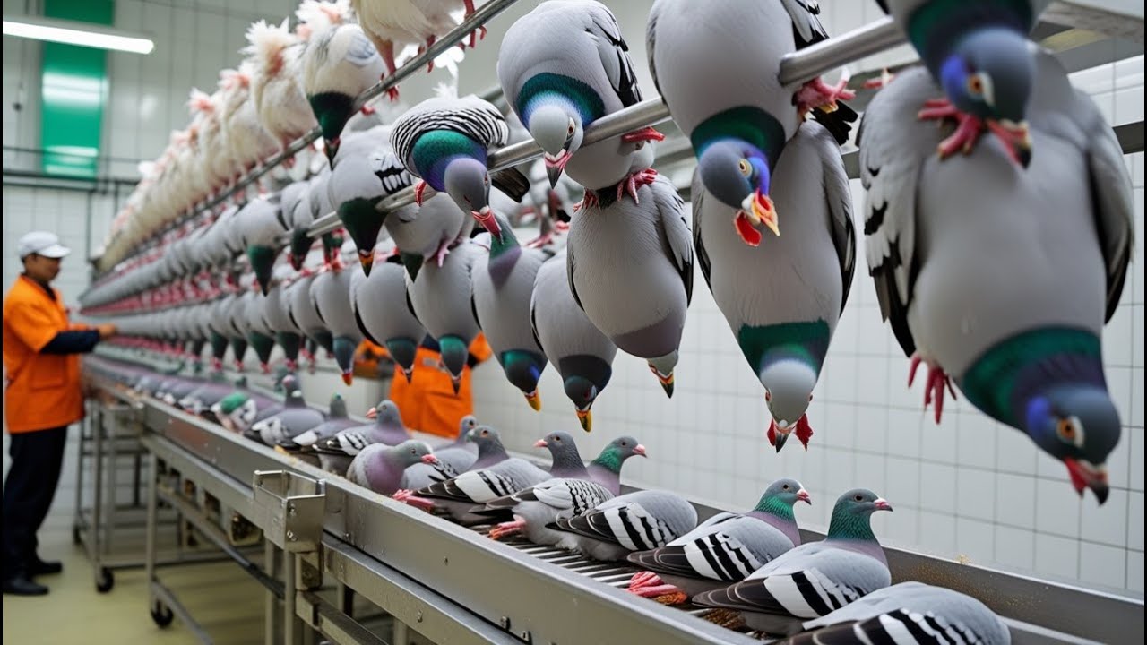 در این ویدئو مراحل پرورش میلیون ها کبوتر را در مزارع آمریکا مشاهده می کنید. بررسی ها نشان می دهد که این کبوترها در کشورهای مختلف جهان برای تولید گوشت و شرکت دادن در مسابقات سرعتی پرورش داده می شوند.