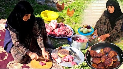 ببینید؛ غذای روستایی در ایلام ؛ پخت کوفته کردی به روش یک مادربزرگ خوش ذوق