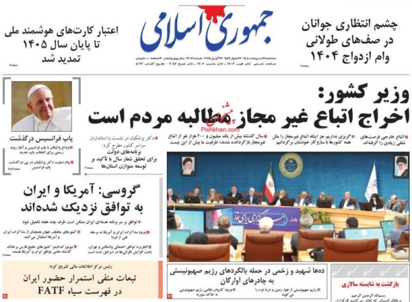 صفحه نخست روزنامه‌های امروز چهارشنبه 3 اردیبهشت 1404