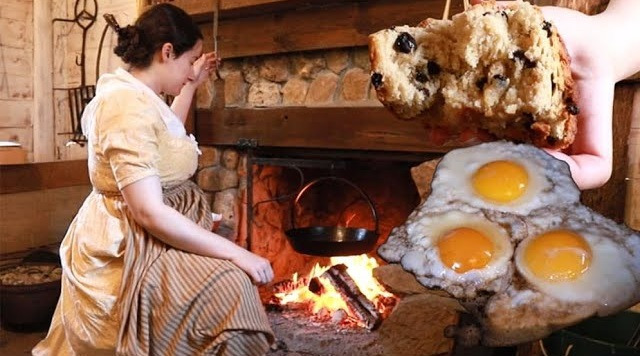 ببینید؛ تهیه صبحانه به سبک دهه 1820 در آمریکا؛ قهوه، کیک دارچینی و تخممرغ