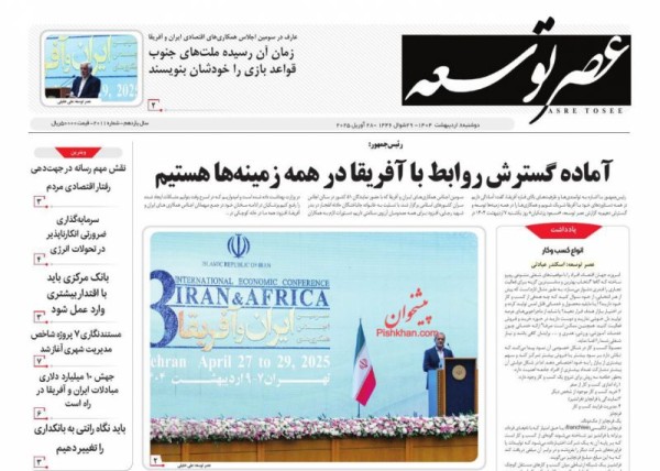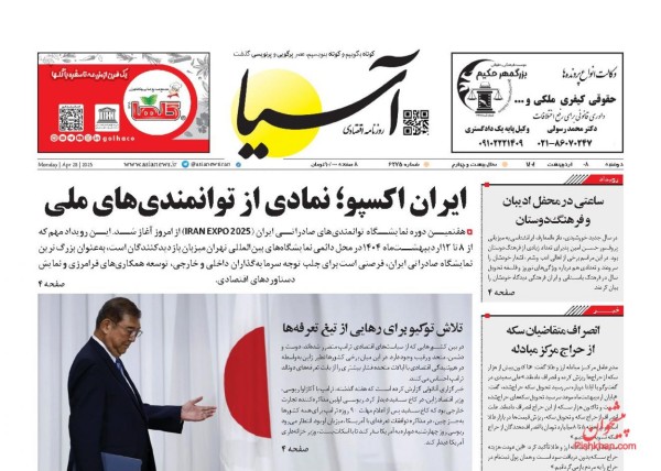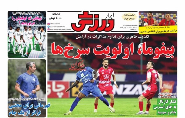 کد: 440007 | 08 اردیبهشت 1404 ساعت 06:54 صفحه نخست روزنامههای امروز دوشنبه 8 اردیبهشت 1404 صفحه نخست روزنامههای امروز دوشنبه 8 اردیبهشت 1404 روزنامه های سراسری مطبوعات کشور روزنامه اشتراک گذاری گزارش خطا × اشتراک گذاری مطلب: صفحه نخست روزنامههای امروز دوشنبه 8 اردیبهشت 1404 فیسبوک اینستاگرام تلگرام ایکس (توییتر) ایتا بله روبیکا × گزارش خطا برای گزارش خطا با پست الکترونیکی: ruydadiran[at]gmail.com در ارتباط باشید
