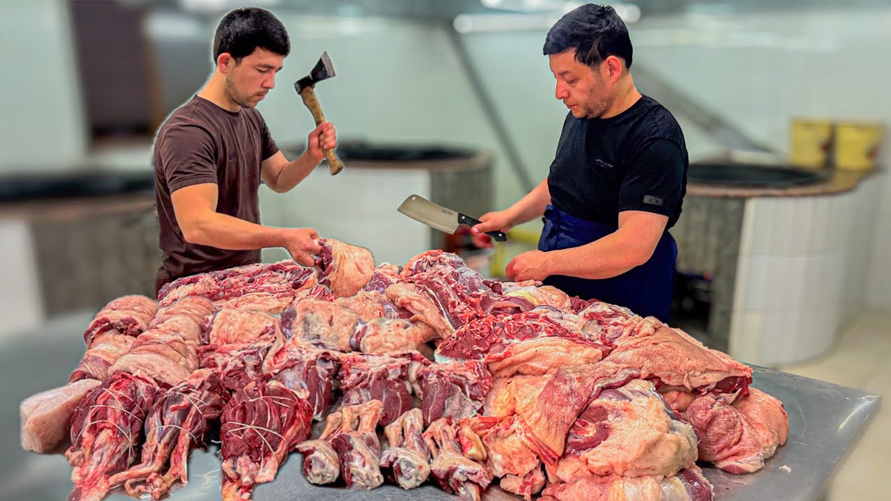 ببینید؛ غذای خیابانی در ازبکستان؛ پخت چلوگوشت سنتی نهورگی اوش برای عروسی