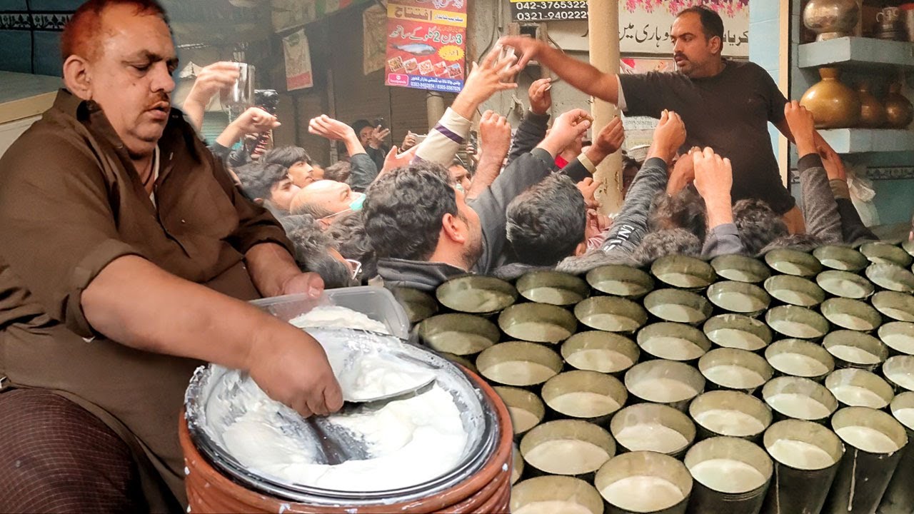 ببینید؛ غذای خیابانی در پاکستان؛ نحوه تهیه لاسی، نوشیدنی محبوب لاهوری ها