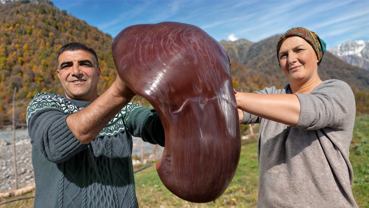 این ویدئو که در یک روستای سرسبز در آذربایجان ضبط شده است، یک زوج خوش ذوق را نشان می دهد که با جگر گاو، یک غذای سنتی آماده می کنند.