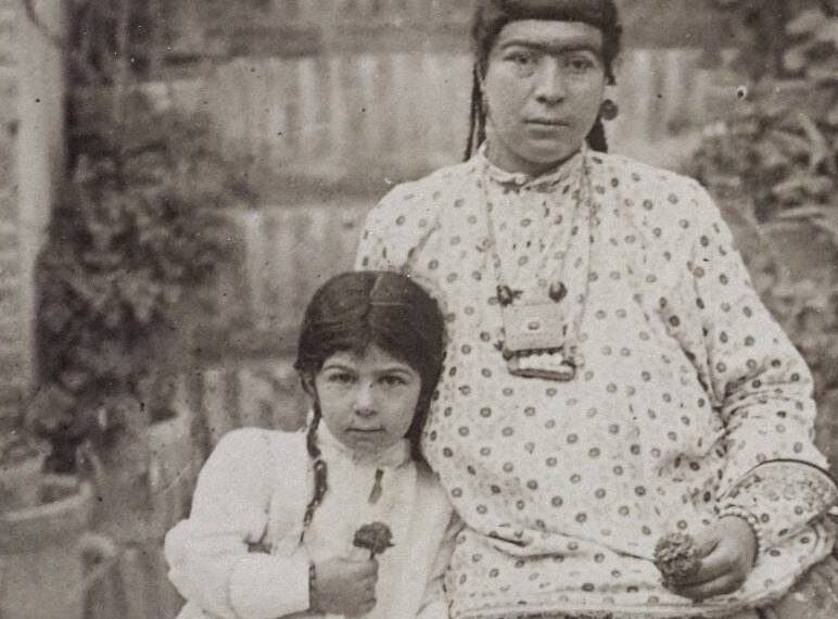 عکس آتلیه‌ای مادر و دختر ایرانی در دوران قاجار
