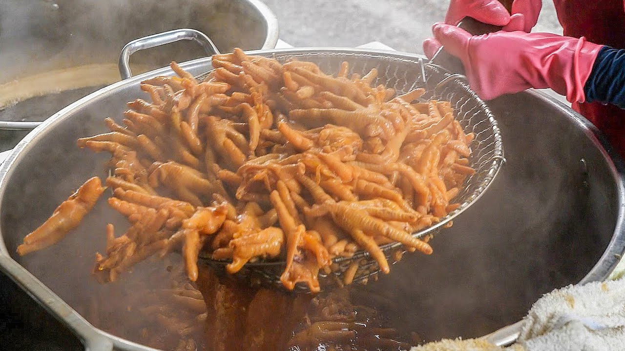 ببینید؛ غذای خیابانی در تایوان؛ پخت یک غذای محبوب با پای مرغ در چانگهوا
