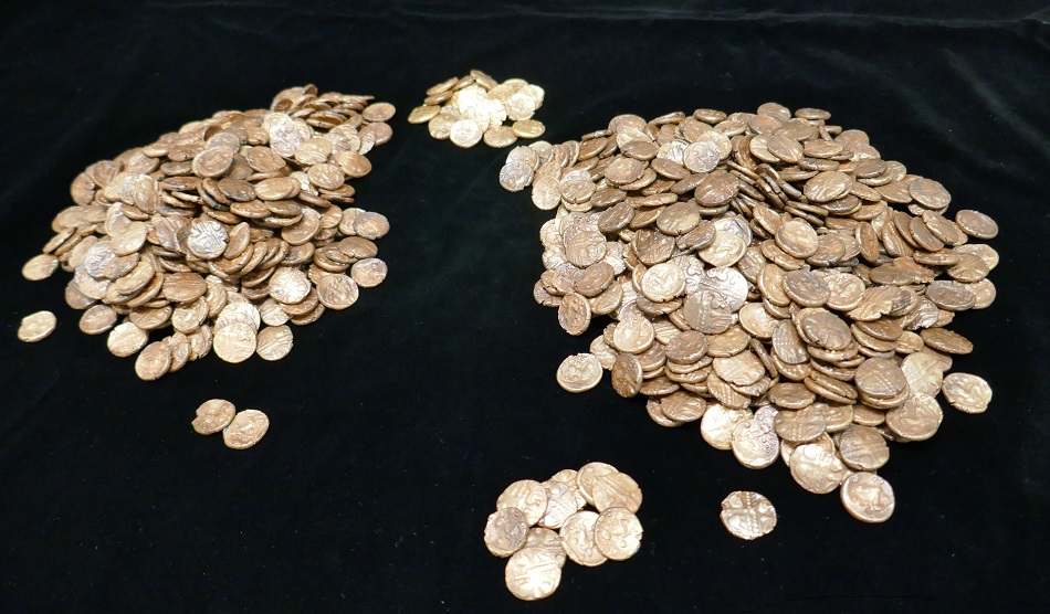 این گنجینه در سال ۲۰۲۰ در شرایطی مشکوک کشف شد؛ به همین دلیل تا به امروز اطلاعات دقیق آن منتشر نشده بود. کاشف گنجینه، فردی بود که با فلزیاب وارد مزرعۀ خصوصی‌ای شده بود که اجازه‌ی ورود به آن را نداشت. او در ۲۲ سپتامبر سکه‌های طلا را پیدا کرد، اما آن‌ها را به اداره‌ی مسئول آثار باستانی اعلام نکرد که این هم تخلف جدی‌تری محسوب می‌شد.