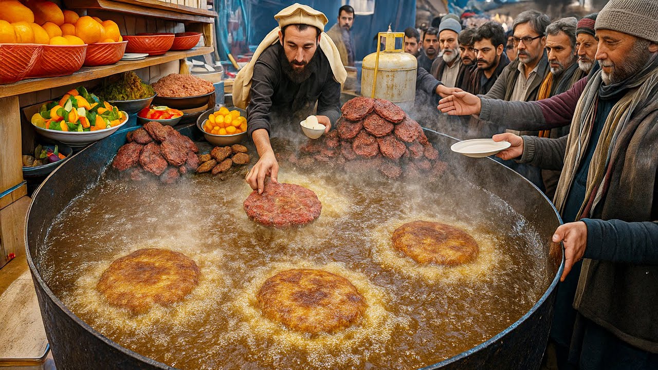 ببینید؛ غذای خیابانی در افغانستان؛ پخت 55 کیلو چپلی کباب در کابل