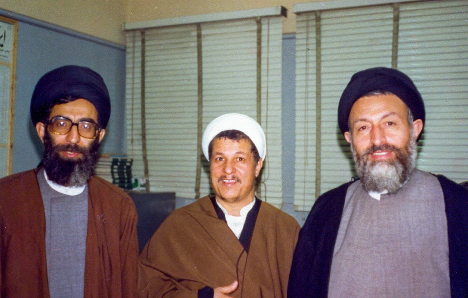 عکسی که در زیر ملاحظه میکنید، شهید بهشتی و شهید باهنر را در کنار رهبر انقلاب در سال 1359 در یک جلسۀ دوستانه و در هنگام صرف غذا نشان میدهد.