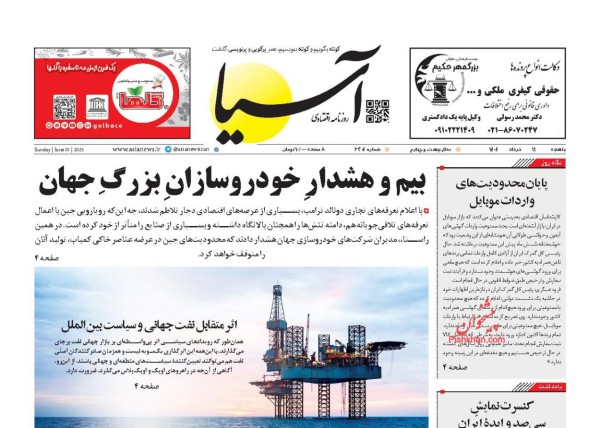 کد: 458620 | 11 خرداد 1404 ساعت 08:21 صفحه نخست روزنامههای امروز یکشنبه11 خرداد 1404 صفحه نخست روزنامههای امروز یکشنبه11 خرداد 1404 روزنامه های سراسری مطبوعات کشور روزنامه اشتراک گذاری گزارش خطا × اشتراک گذاری مطلب: صفحه نخست روزنامههای امروز یکشنبه11 خرداد 1404 فیسبوک اینستاگرام تلگرام ایکس (توییتر) ایتا بله روبیکا × گزارش خطا برای گزارش خطا با پست الکترونیکی: ruydadiran[at]gmail.com در ارتباط باشید