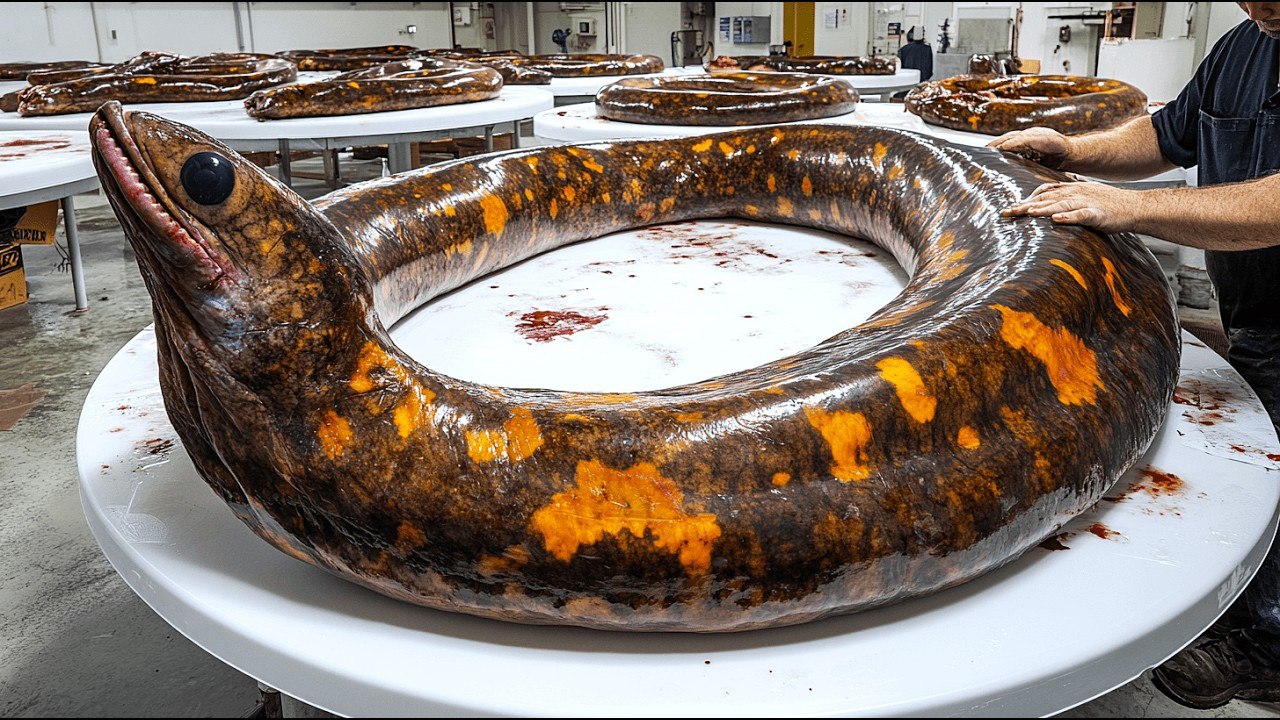در این ویدئو مراحل صید، برش و پخت غذا با مارماهی غول پیکر مورای را در تایپه تایوان مشاهده می کنید. مارماهی غولپیکر مورای (Giant Moray Eel) یکی از بزرگترین گونههای مارماهی است که تا ۳ متر رشد میکند. در آبهای گرم اقیانوس هند و آرام، بهویژه صخرههای مرجانی زندگی میکند. دندانهای تیز و گاز بسیار قوی دارد و بیشتر شبها شکار میکند. ظاهر ترسناک و رفتار تهاجمیاش باعث شهرت آن شده است.