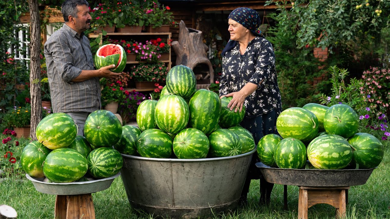 ببینید؛ غذای روستایی در آذربایجان؛ پخت مربای پوست هندوانه