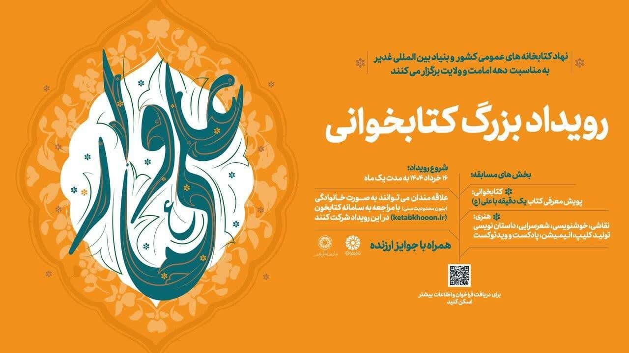 به گزارش پایگاه اطلاع‌رسانی نهاد کتابخانه‌های عمومی کشور، در آستانه فرا رسیدن عید سعید غدیر خم، بزرگ‌ترین عید شیعیان و در راستای ترویج معارف علوی و سبک زندگی حضرت امیرالمؤمنین علی(ع)، رویداد ملی کتابخوانی «علی‌وار» با همکاری مشترک نهاد کتابخانه‌های عمومی کشور و بنیاد بین‌المللی غدیر برگزار می‌شود.