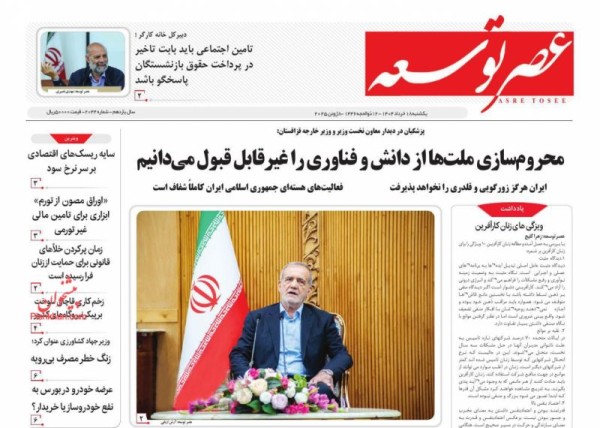 کد: 461655 | 18 خرداد 1404 ساعت 08:01 صفحه نخست روزنامههای امروز یکشنبه 18 خرداد 1404 صفحه نخست روزنامههای امروز یکشنبه 18 خرداد 1404 روزنامه های سراسری مطبوعات کشور روزنامه اشتراک گذاری گزارش خطا × اشتراک گذاری مطلب: صفحه نخست روزنامههای امروز یکشنبه 18 خرداد 1404 فیسبوک اینستاگرام تلگرام ایکس (توییتر) ایتا بله روبیکا × گزارش خطا برای گزارش خطا با پست الکترونیکی: ruydadiran[at]gmail.com در ارتباط باشید