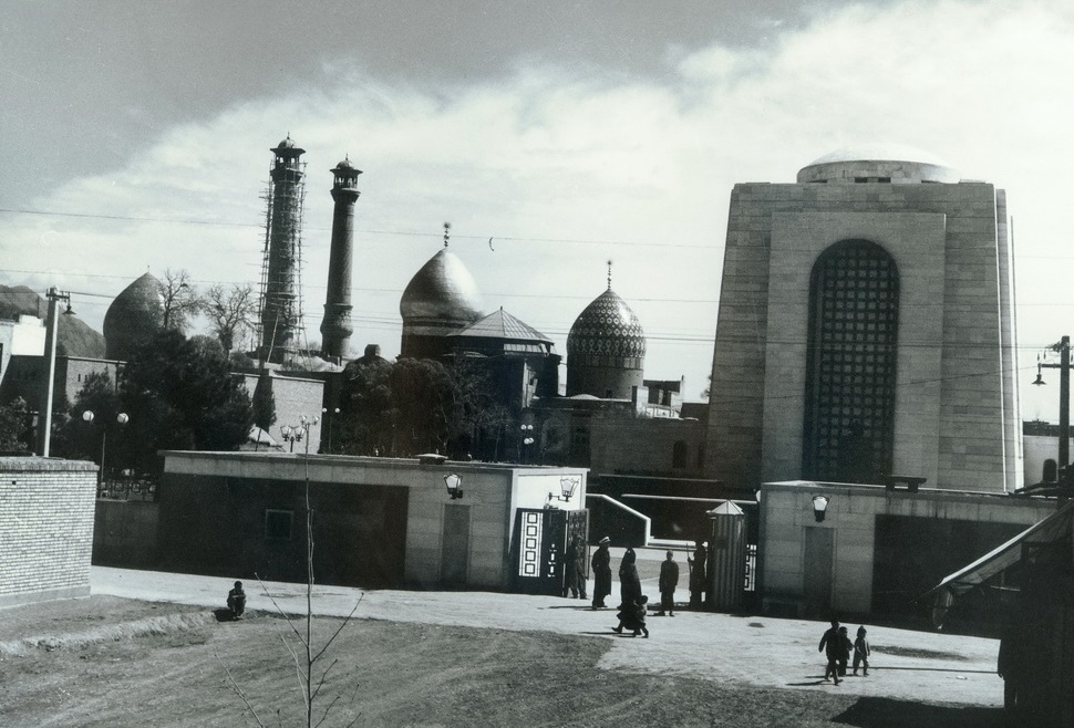 عکسی که در زیر ملاحظه میکنید، چشماندازی از مقبرۀ رضاخان را در نخستین سالهای ساخت آن در کنار حرم حضر عبدالعظیم به تصویر کشیده است. در پیشزمینۀ تصویر خیابانی خاکی و کودکانی مشغول بازی کردن دیده میشوند.