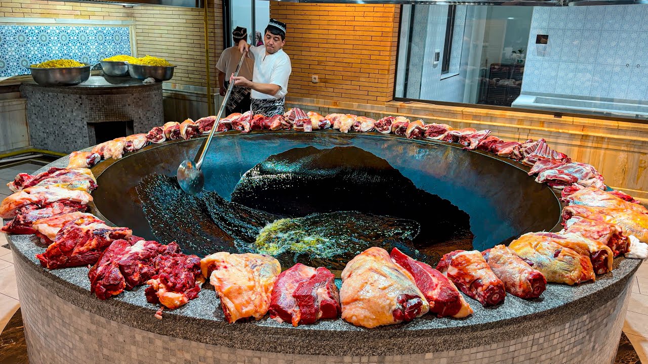 در این ویدئو مراحل پخت 500 کیلو سمرقند پلو با گوشت را برای یک مراسم عروسی در تاشکند و توسط آشپزهای مشهور ازبک مشاهده می کنید.