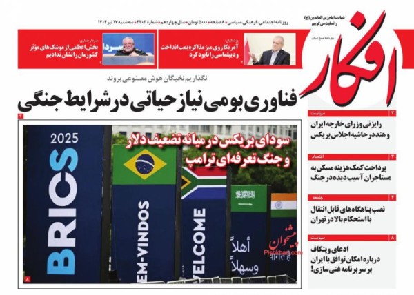 کد: 466814 | 17 تیر 1404 ساعت 08:14 صفحه نخست روزنامههای امروز سه شنبه 17 تیر 1404 صفحه نخست روزنامههای امروز سه شنبه 17 تیر 1404 روزنامه های سراسری مطبوعات کشور روزنامه اشتراک گذاری گزارش خطا × اشتراک گذاری مطلب: صفحه نخست روزنامههای امروز سه شنبه 17 تیر 1404 فیسبوک اینستاگرام تلگرام ایکس (توییتر) ایتا بله روبیکا × گزارش خطا برای گزارش خطا با پست الکترونیکی: ruydadiran[at]gmail.com در ارتباط باشید