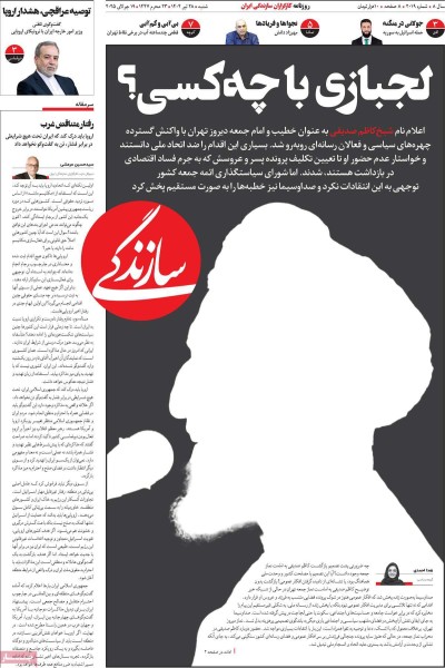 صفحه نخست امروز روزنامه سازندگی