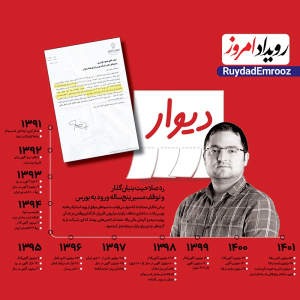 رویداد امروز: در حالی که مراحل ورود «دیوار» به بازار سرمایه کشور به ایستگاه نهایی نزدیک شده بود، رد صلاحیت بنیانگذار این شرکت از سوی یکی از نهادهای امنیتی، مسیر پذیرش پنجساله این کسبوکار استارتاپی موفق ایرانی را بهطور کامل متوقف کرد.