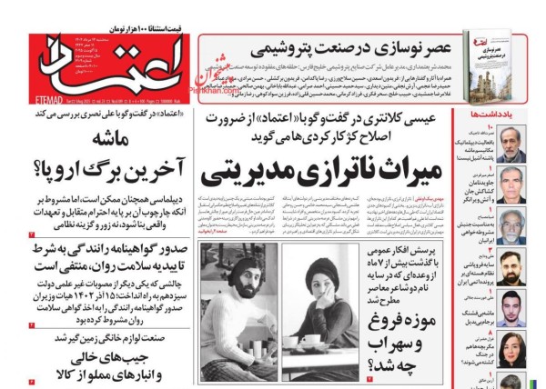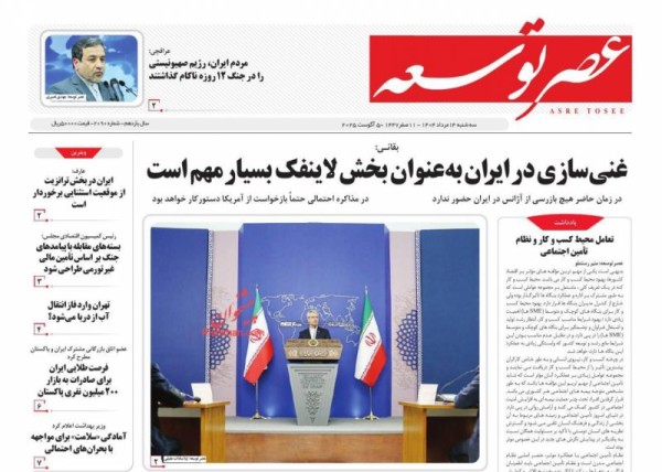صفحه نخست روزنامههای امروز سه شنبه 14 مرداد 1404