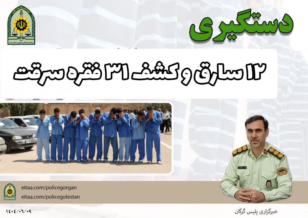 دستگیری ۱۲ سارق حرفهای و کشف ۳۱ فقره سرقت در گرگان