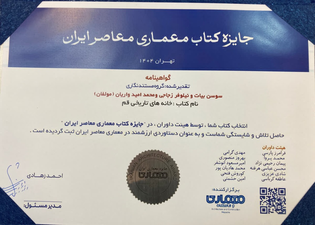 کتاب «خانههای تاریخی قم» در جایزه معماری معاصر ایران برگزیده شد