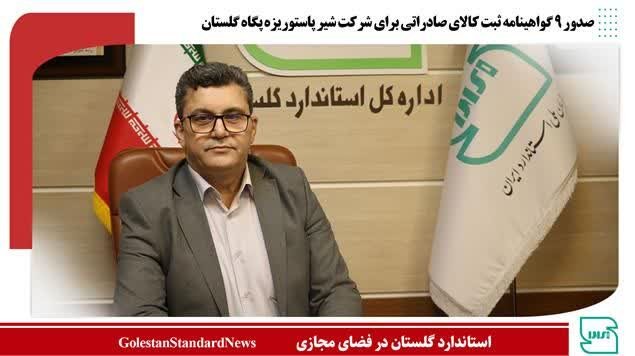 صدور 9 گواهینامه ثبت کالای صادراتی برای شرکت شیر پاستوریزه پگاه گلستان