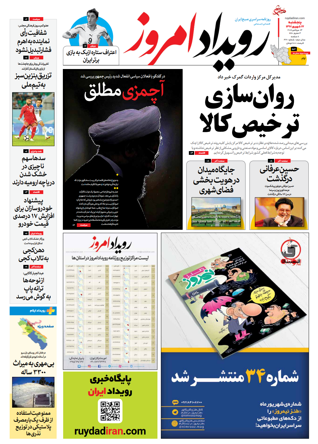 کد: 4692 | 22 شهریور 1397 ساعت 00:00 روزنامه رویداد امروز پنجشنبه ۲۲ شهریور ۹۷ رویداد ایران رویداد امروز اشتراک گذاری گزارش خطا × اشتراک گذاری مطلب: روزنامه رویداد امروز پنجشنبه ۲۲ شهریور ۹۷ فیسبوک اینستاگرام تلگرام ایکس (توییتر) ایتا بله روبیکا × گزارش خطا برای گزارش خطا با پست الکترونیکی: ruydadiran[at]gmail.com در ارتباط باشید
