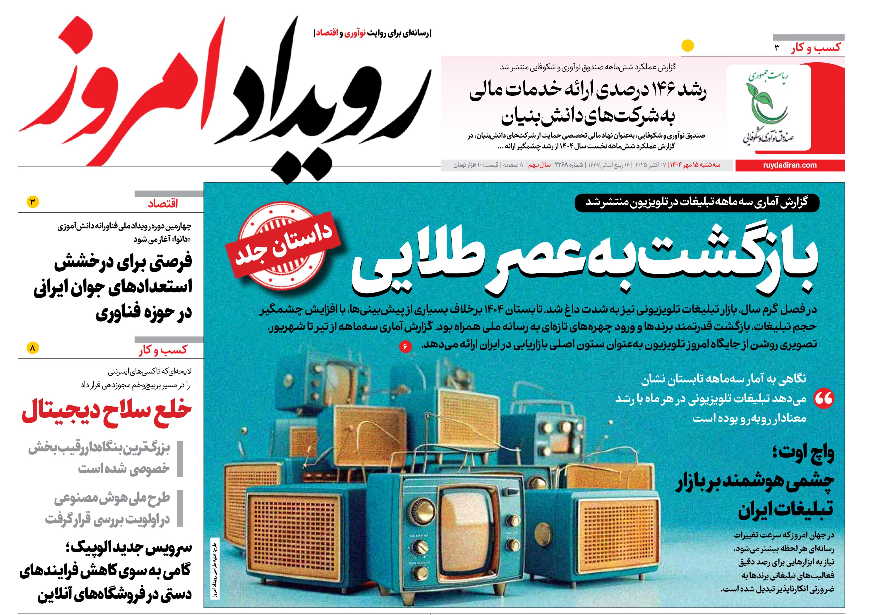 روزنامه رویداد امروز سه شنبه 15مهر 1404