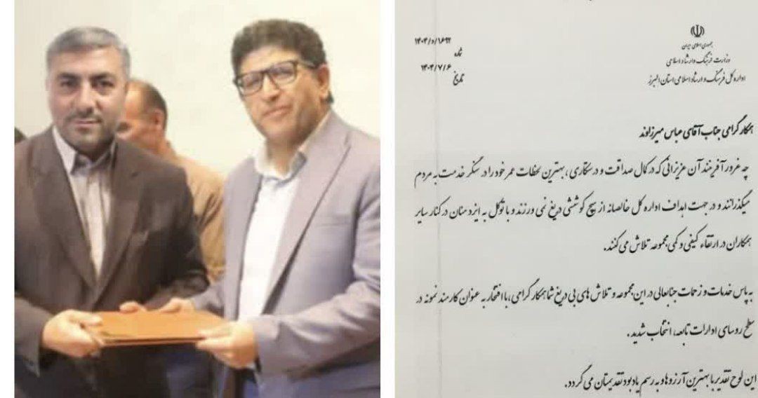 به گزارش پایگاه خبری رویداد ایران به نقل از روابط عمومی؛ عباس میرزاوند، سرپرست اداره فرهنگ و ارشاد اسلامی شهرستان چهارباغ، با دریافت لوح تقدیر از ابراهیم شریفی، مدیرکل فرهنگ و ارشاد اسلامی استان البرز، به عنوان کارمند نمونه در بین روسای ادارات تابعه استان البرز معرفی و تقدیر شد.