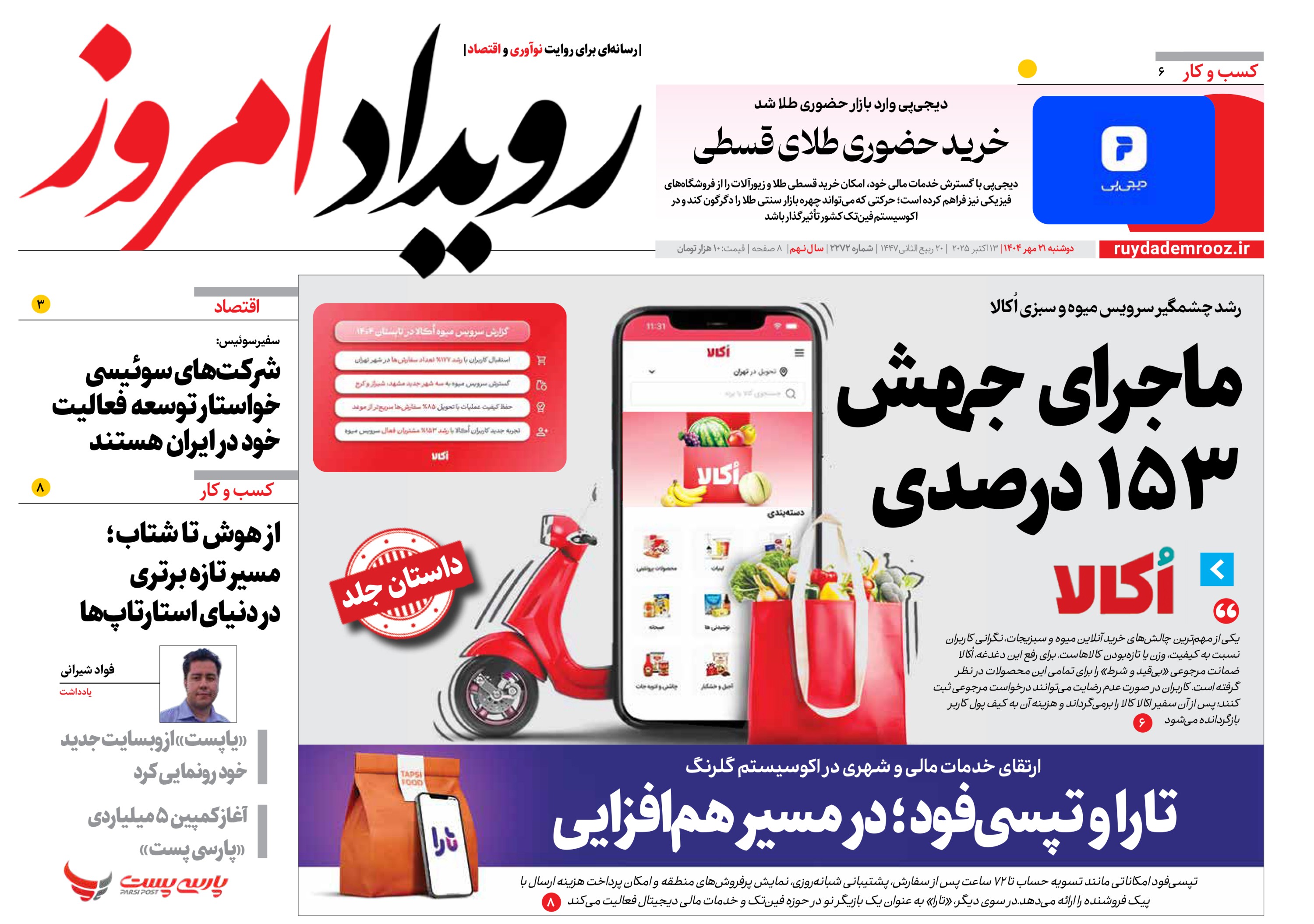 روزنامه رویداد امروز دوشنبه ۲۱ مهر 1404